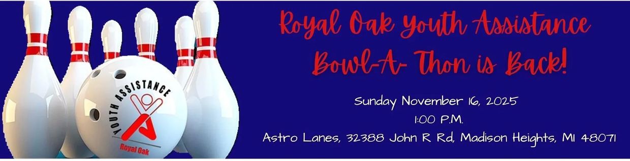 We have started planning for our 39th annual Bowl-A-Thon! It will be held on Sunday, November 16, 2025 from 1pm to 4pm at Astro Lanes, 32388 John R Rd., Madison Heights, MI. We would love to see you and your team there again -or for the first time!